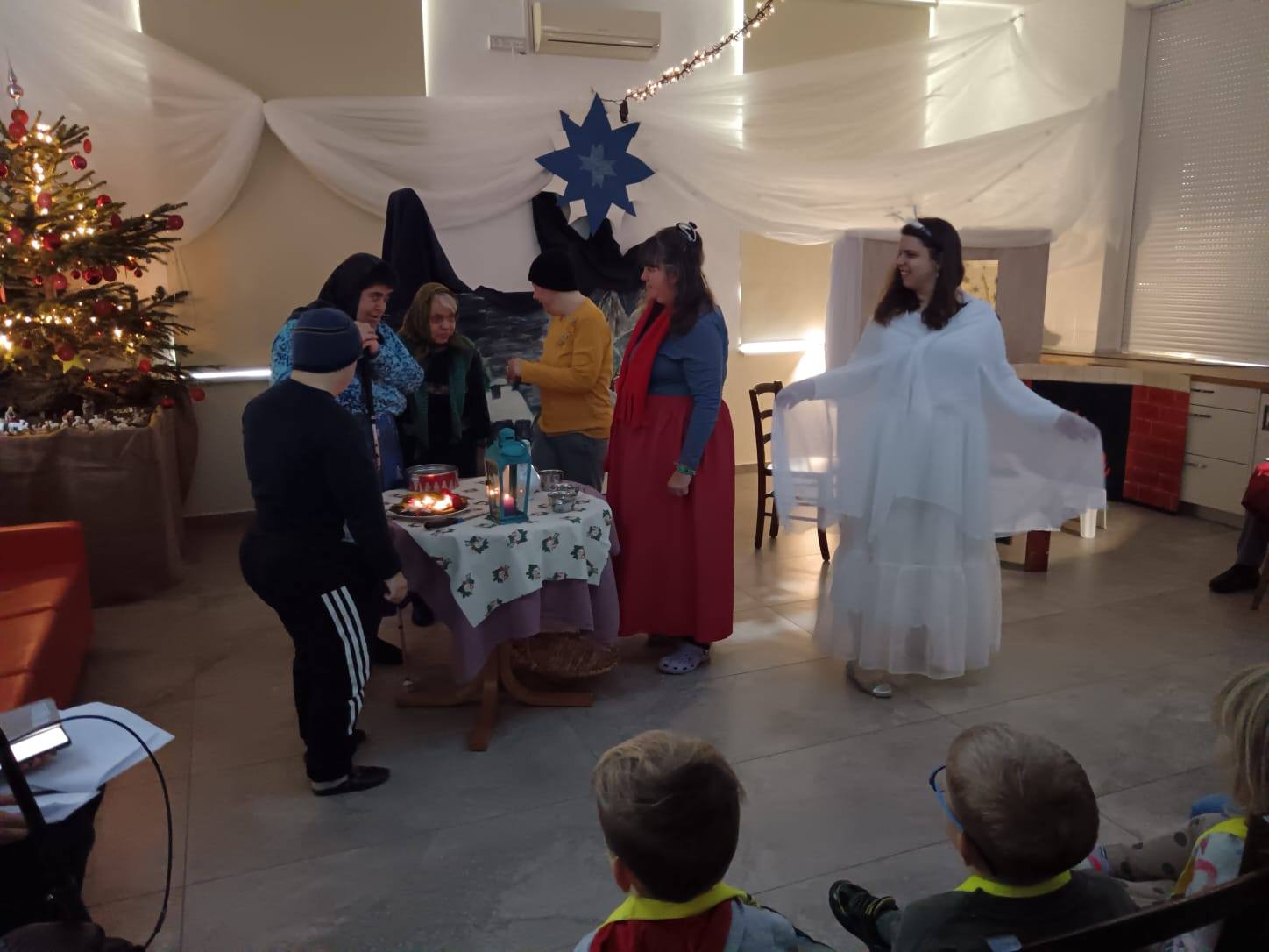Našim malim gostom smo z veseljem in ponosom predstavili našo novo predstavo Snežinka in lonci, ki poudarja, kako pomembno je truditi se biti dober in dobroto deliti tudi drugim. Otroci iz skupine Žirafe pa so nas razveselili s svojo plesno točko, skozi katero so poudarjali pomen prijaznosti, srčnosti in medsebojnega spoštovanja. Skozi ples so nam sporočili nekaj, kar še posebej odmeva v decembrskem prazničnem času: da majhna dejanja prijaznosti naredijo veliko razliko.