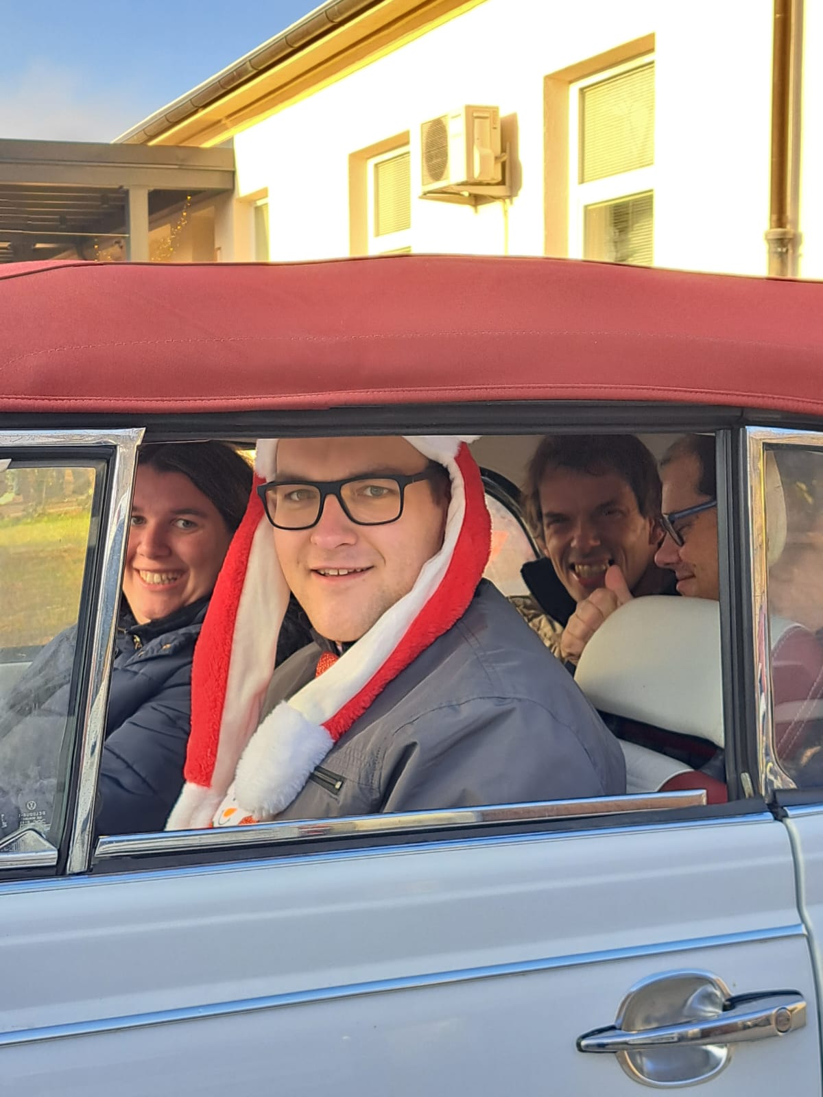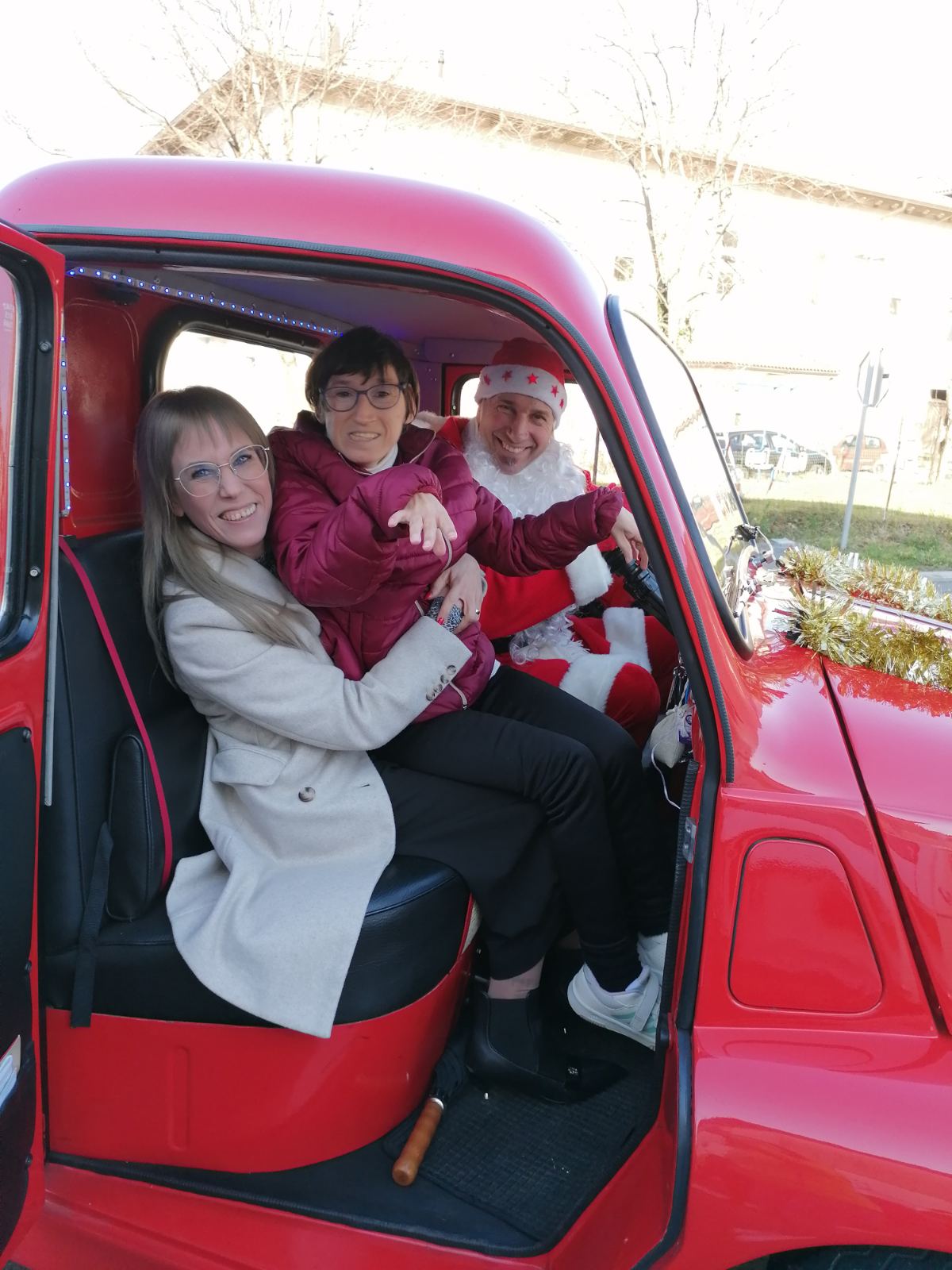 Božički so prišli polni dobre volje, nasmehov in prazničnega duha, s seboj pa so prinesli tudi sladka darila. Najbolj razburljiv del obiska pa je bil seveda krog z njihovimi praznično okrašenimi starodobniki. Nekateri naši uporabniki so se lahko popeljali v čudovitih, skrbno ohranjenih vozilih.