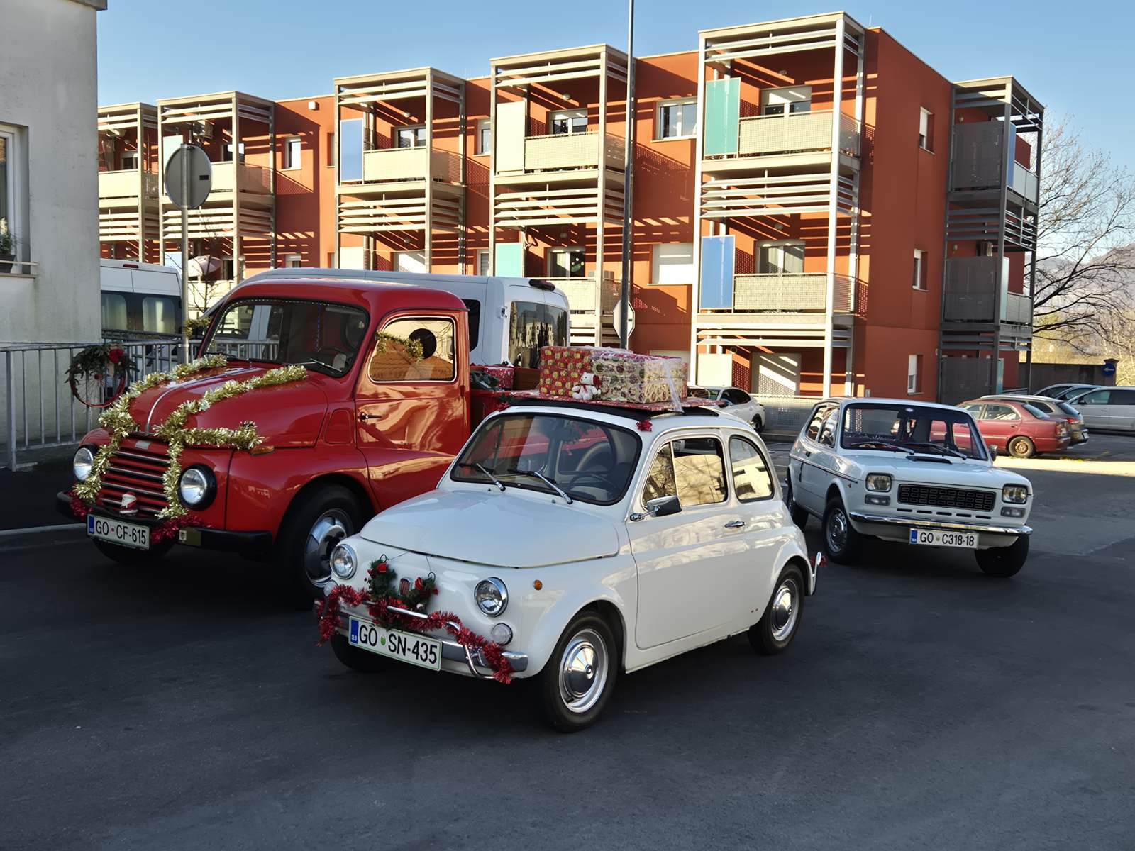 Prijatelji iz Društva ljubiteljev starodobnih vozil Vipavska dolina so nas letos obiskali že tretje leto zapored. Božičkom smo hvaležni za podarjeni čas in njihovo širjenje dobrote ter si želimo, da tradicijo nadaljujejo tudi v prihodnjih letih.
