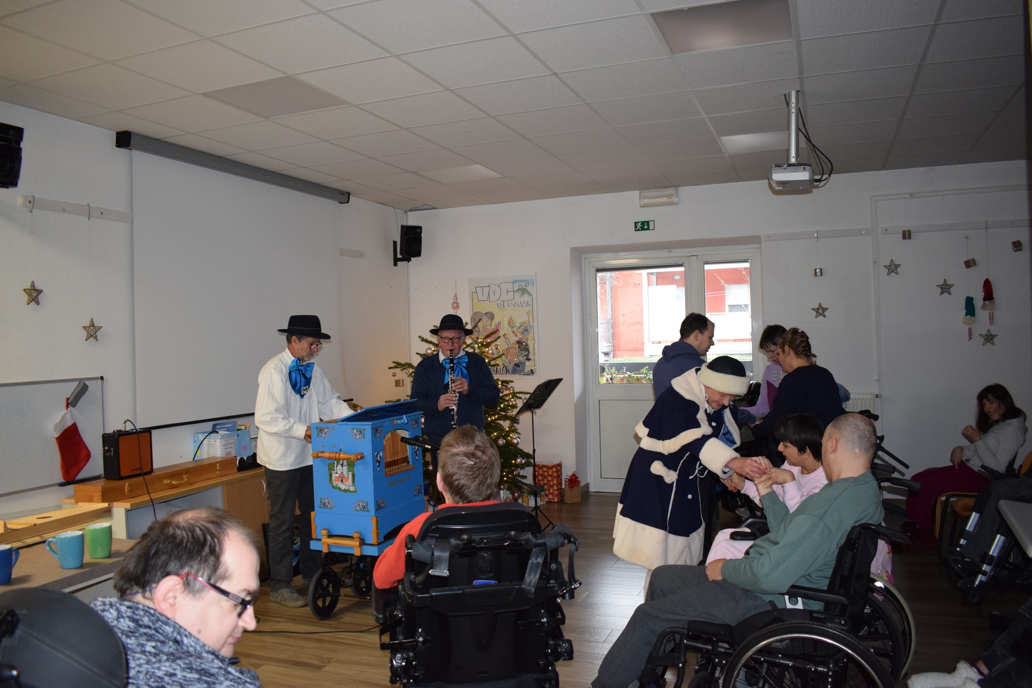 V sredo, 17. decembra 2025, so se v vipavski enoti VDCja zaslišale čudovite božične pesmi, ki jih je izvajala gospa Majda Marinšek na lajni. Njena glasba je takoj napolnila prostor s prazničnim vzdušjem, toplino in radostjo. Majda s svojo izjemno energijo in spretnostjo lajno spremeni v glasbeni pripovedovalni inštrument, iz katerega izvabi nežne in čarobne melodije, značilne za božični čas.